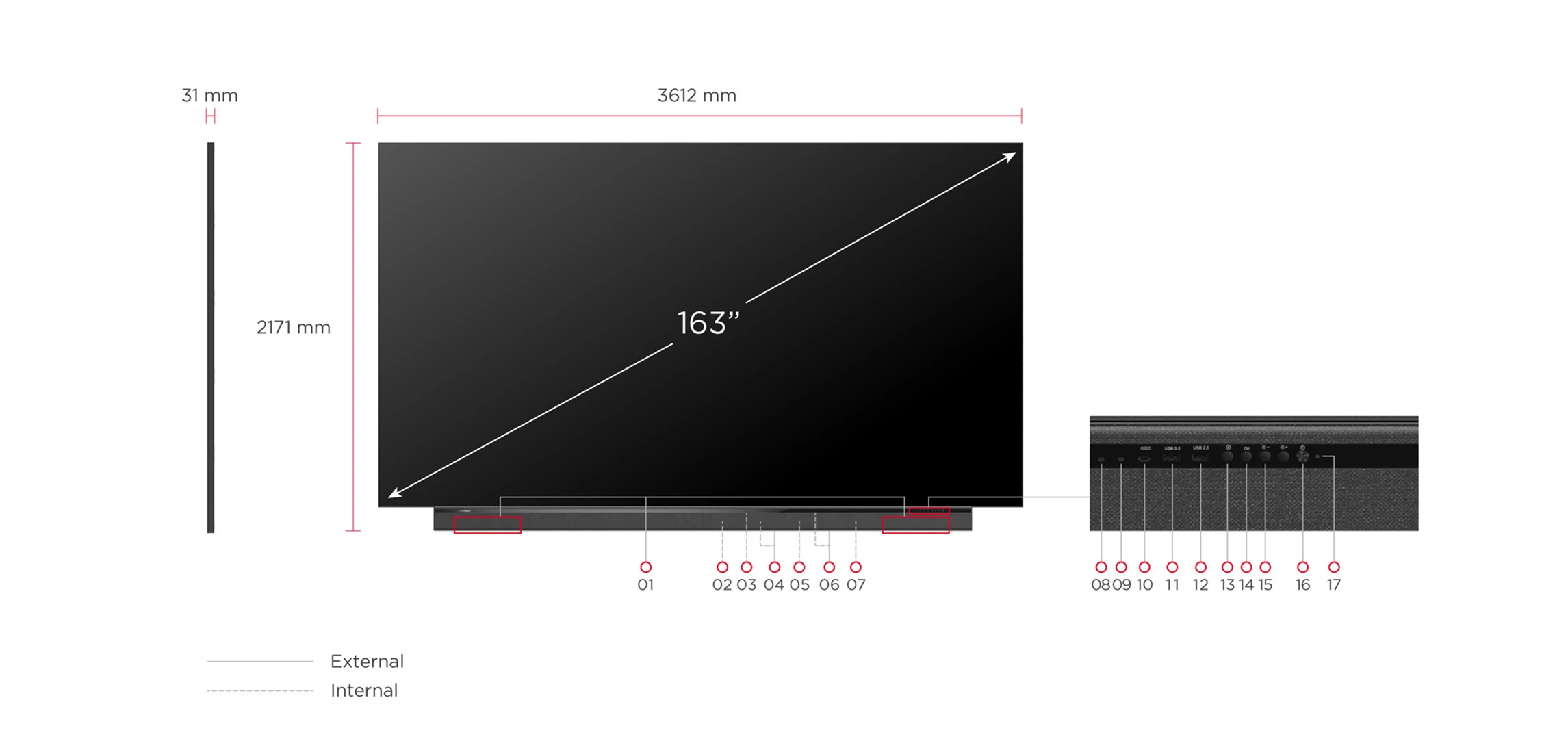 - Màn hình siêu lớn 163 inch với tỷ lệ chuẩn 16:9.