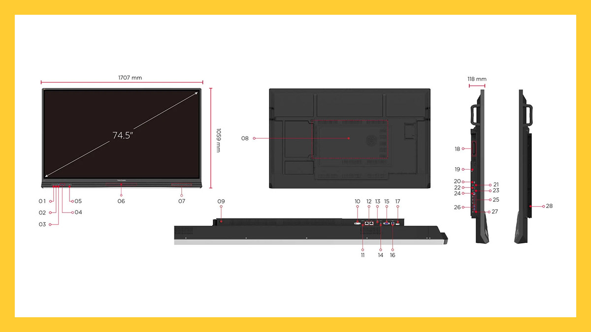 | 8. Giá treo tường VESA® 800×400 mm | 18. Máy tính cắm vào | 28. AC VÀO |