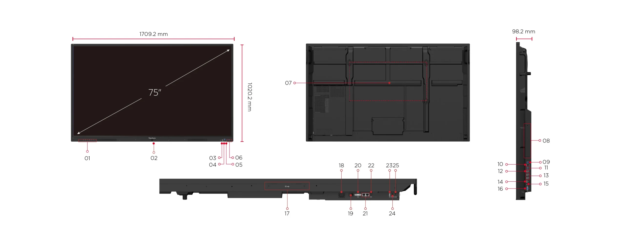| 1. Control Menu | 7. VESA® Wall Mount 800 × 400 mm | 13. HDMI × 2 | 19. Power Switch |