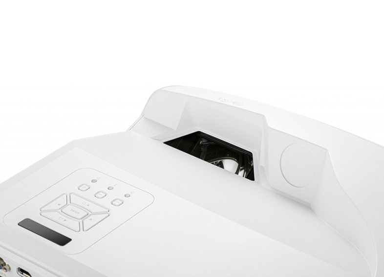 Với tỷ lệ chiếu siêu ngắn 0,25:1, máy chiếu dễ dàng tạo hình ảnh 100 inch chỉ từ khoảng cách 28 cm. Thiết kế này không chỉ tối ưu cho không gian hẹp mà còn loại bỏ bóng đổ và ánh sáng trực tiếp vào người thuyết trình, mang đến trải nghiệm hiển thị mượt mà, thoải mái cho người xem.